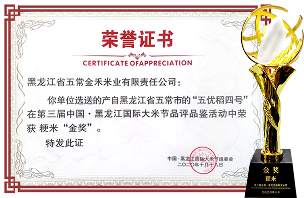 第三屆中國?黑龍江國際大米節“聖上壹品”“五優稻四號稻”榮獲金獎;